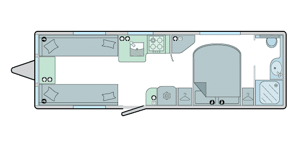 The lounge and kitchen are the main two reasons we swapped, the front lounge seating is massive, we can seat on a seat each and not have our feet dangling over the end. Also our 10 year old grandson slept on it without the need to make it up into a double bed and it was perfectly large enough and comfortable.